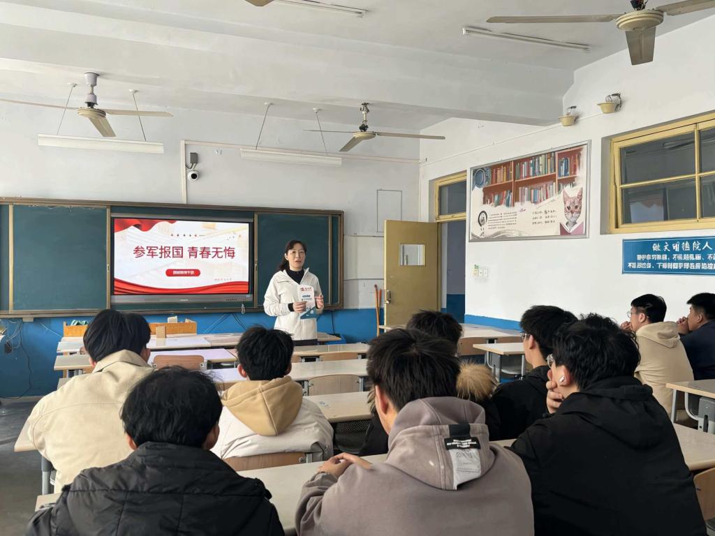 为激发同学们的参军报国意愿,引导适龄青年积极投身国防和军队建设,教师教育学院于3月20日在知行楼306教室开展大学生参军入伍宣传活动。